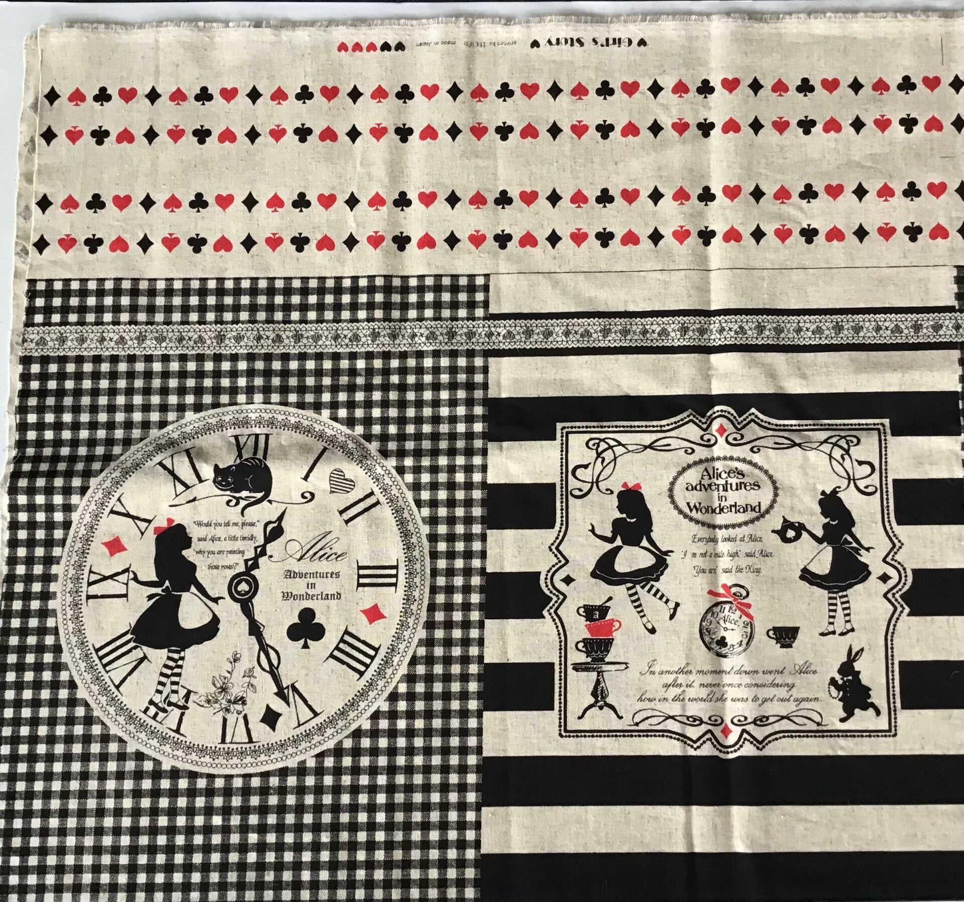 Printed in Japan. NB. Alice panel is 60cm by 110cm. See photos. Each panel contains 4 image prints plus 2 borders. $15 per panel