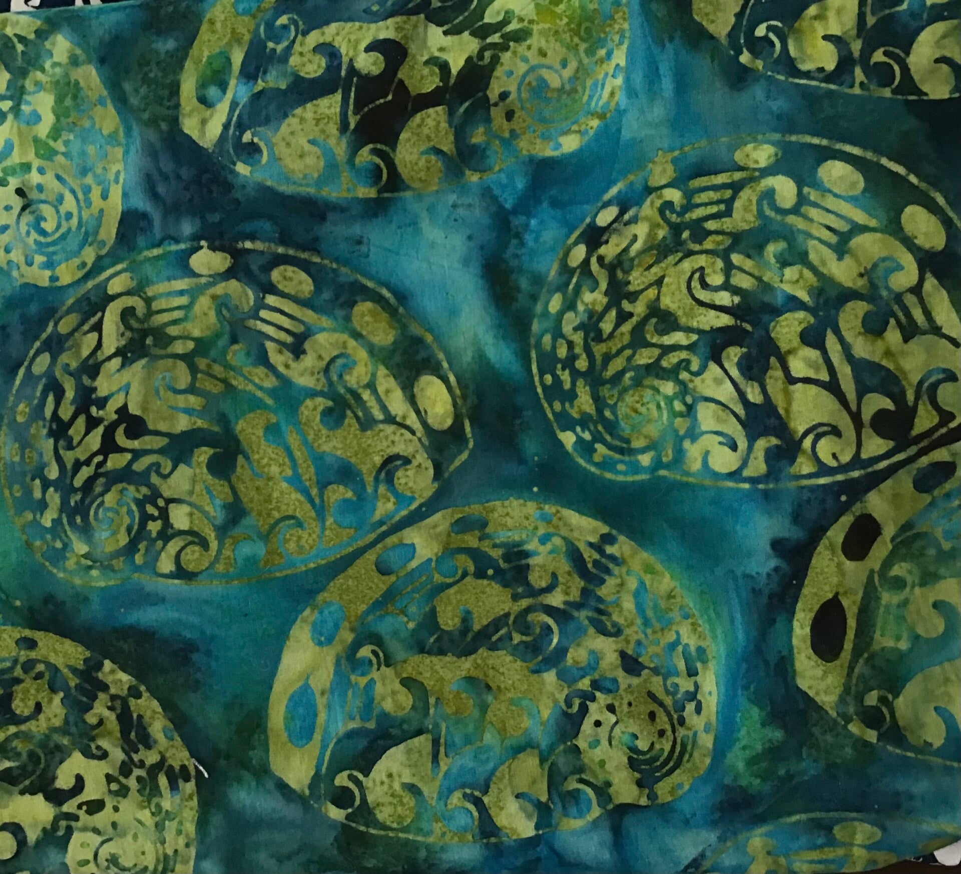 Please note Green and Green 2 batiks are darker than photographed and more of a tie dyed affect.